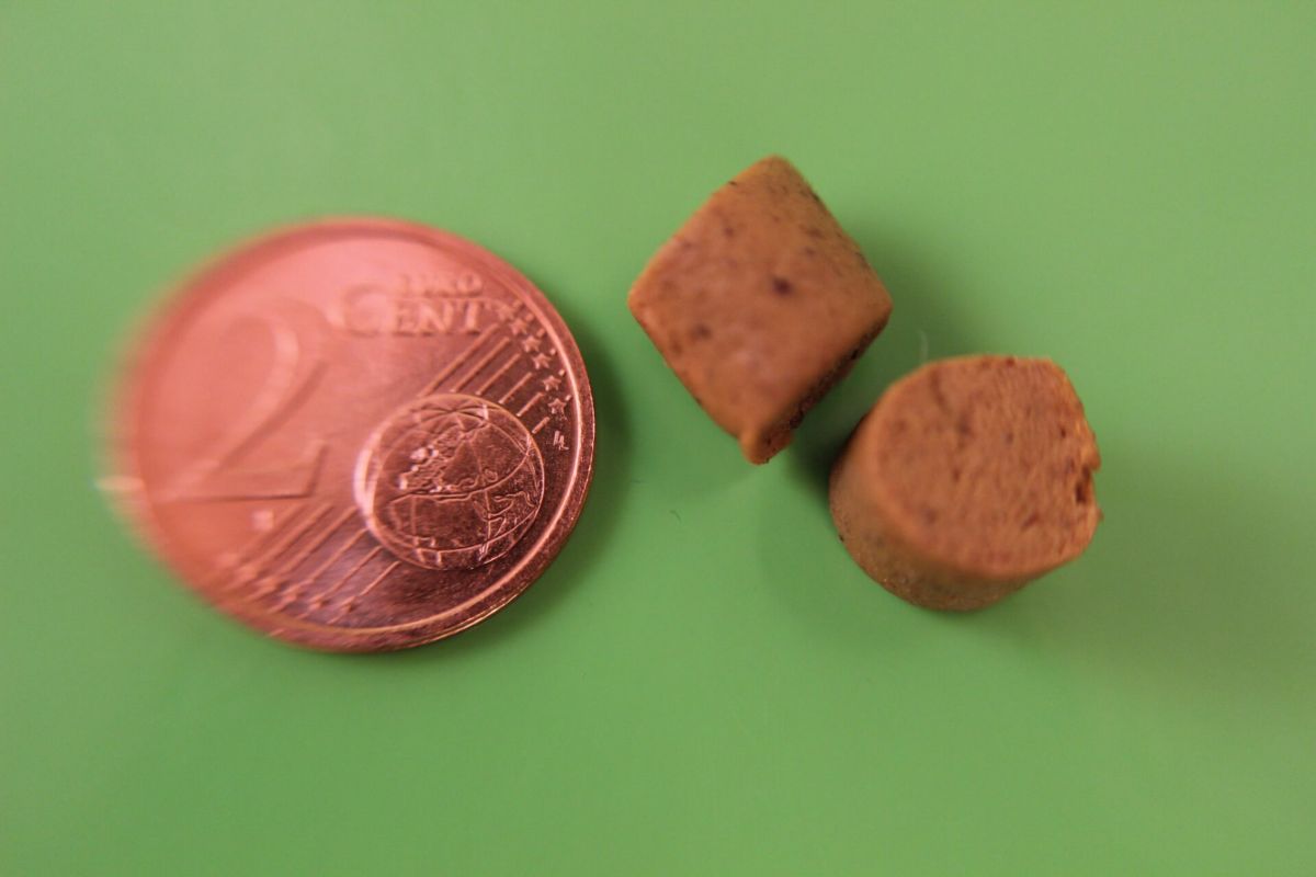 Speziell für Hunde über 10kgsind die Trainingshappen Seefisch wegen ihrer Größe gedacht. PANYS Trainingshappen sind schön weich und lösen sich schnell auf, was für das Hundetraining sehr wichtig ist. Natürlich können die PANYS Trainingshappen auch als weiche, schmackhafte Leckerchen für zwischendurch verwendet werden. Das Besondere an den PANYS Trainingshappen ist, dass sie nicht in der Tasche fetten, d.h. man kann die Trainingshappen auch gut mal in die Jacken oder Hosentasche stecken ohne gleich Fettflecken zu bekommen. Außerdem bleiben die Trainingshappen auch mehrere Tage in der Tasche schön weich (vorzugsweise Jeans). Wie bei allen PANYS Produkten haben wir auf künstliche Aroma- & und Farbstoffe verzichtet.